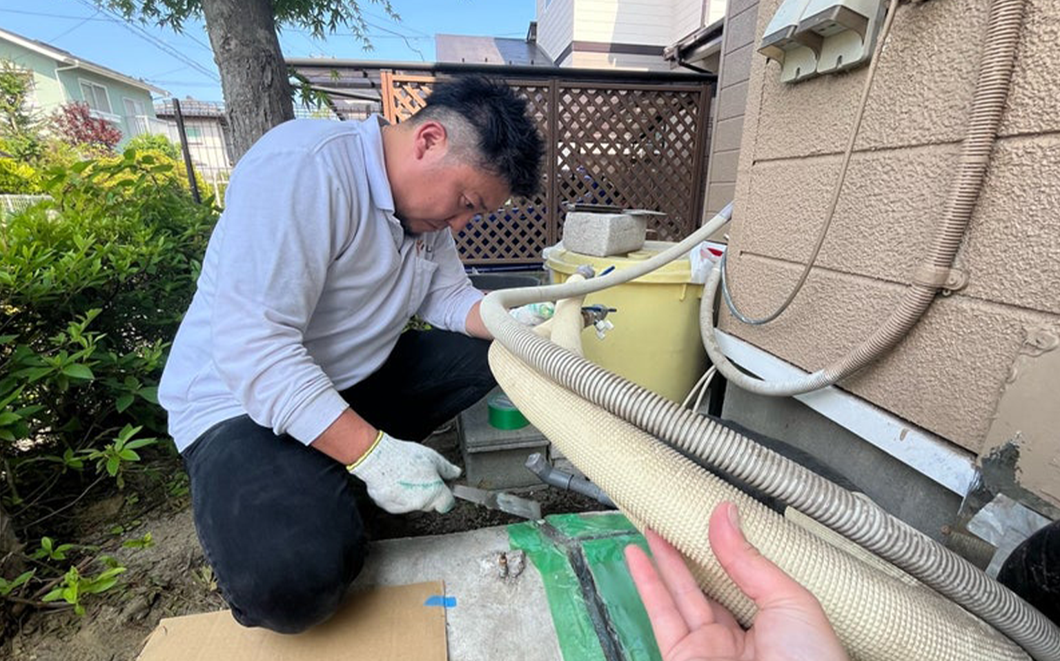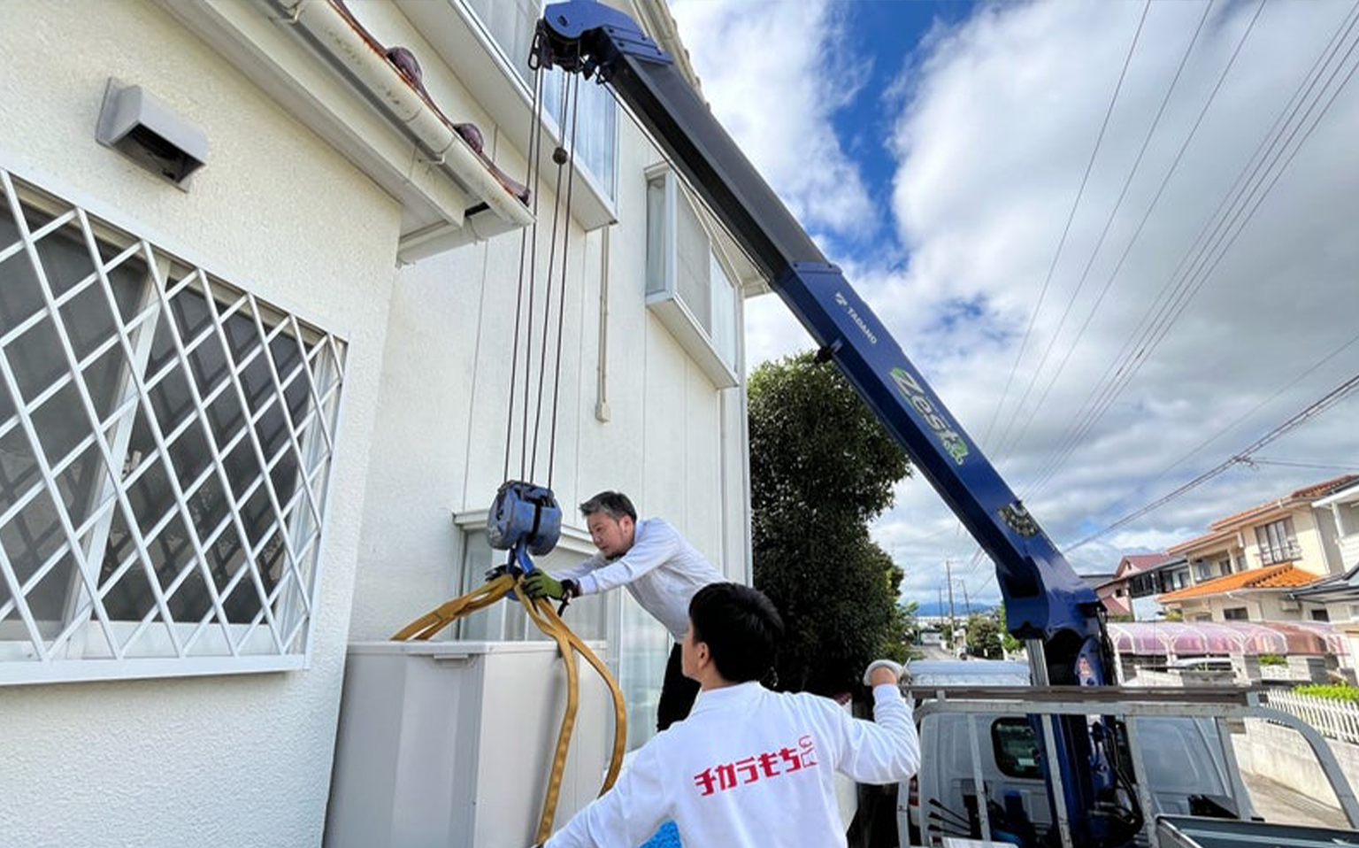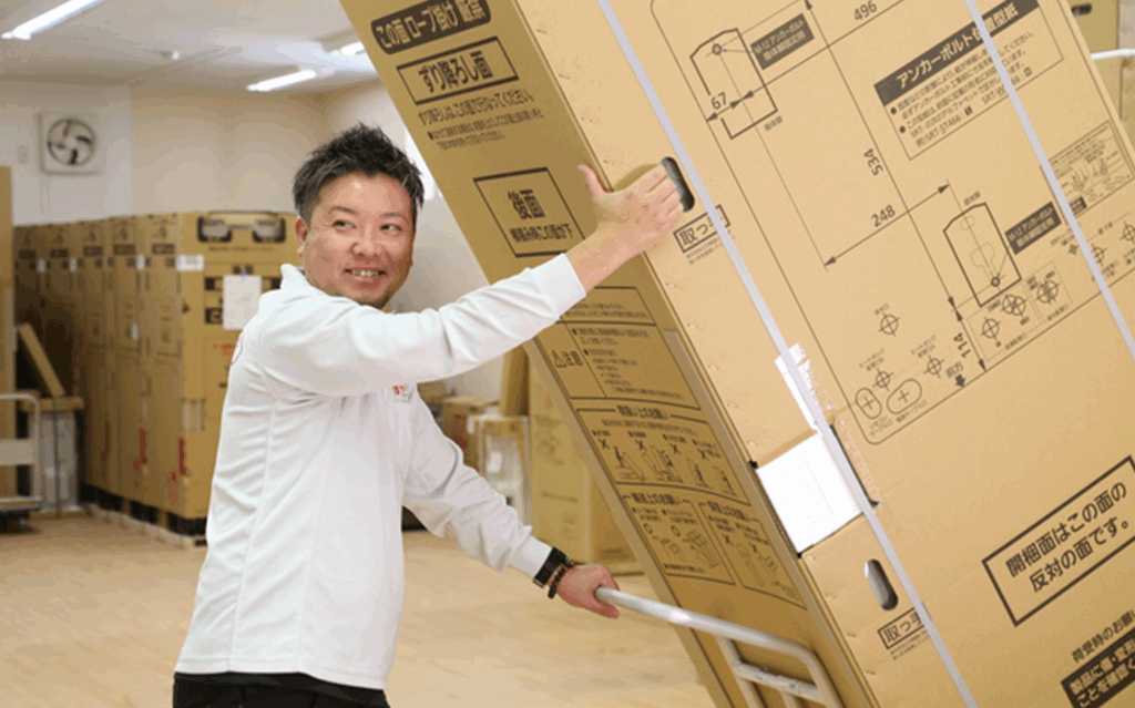 ご契約いただいたお客様宅へエコキュートの運搬、設置を行います。