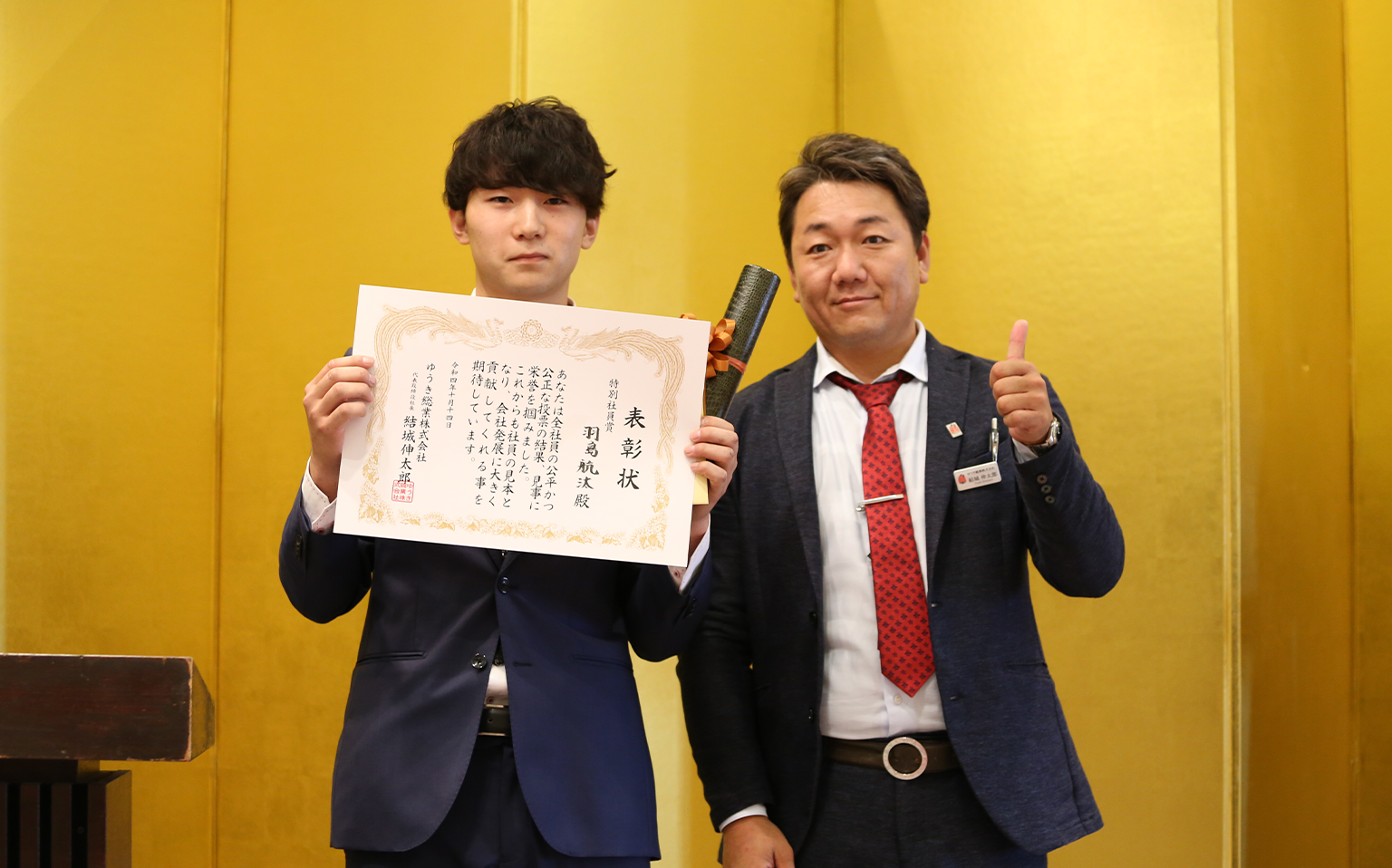 毎年9月に開催される経営計画発表会で「社長賞」「優秀社員賞」を発表。社員全員この賞のために1年間頑張っています。経営計画発表会の後はみんなで懇親会に参加します。